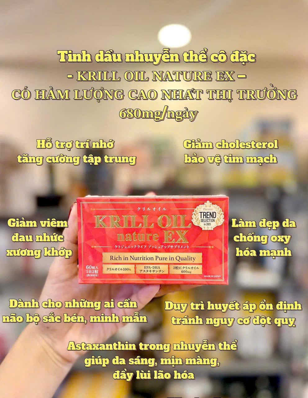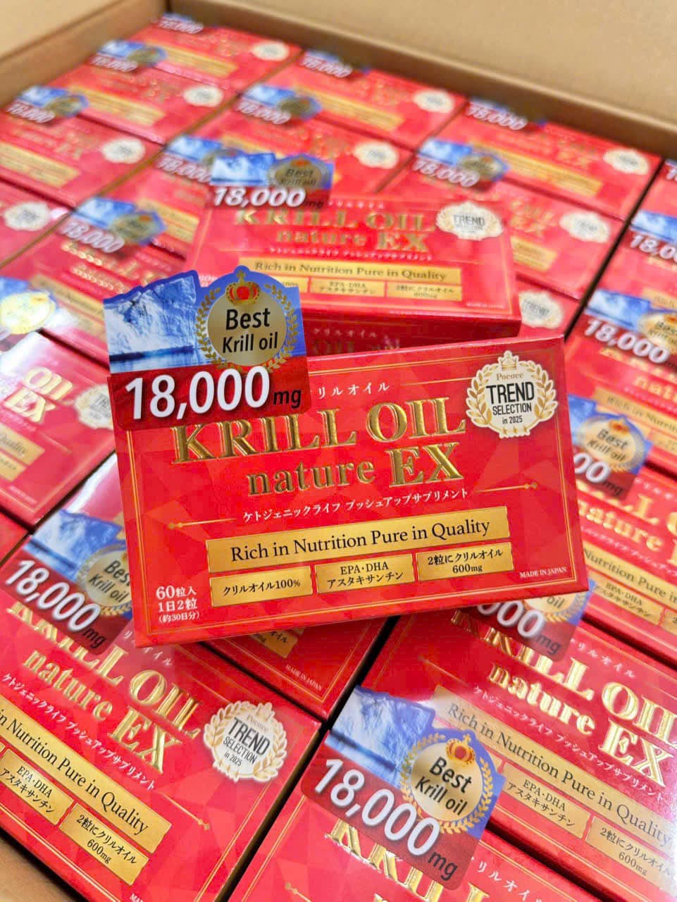 Dòng nhuyễn thể cô đặc KRILL OIL NATURE EX 18,000mg còn là dòng sản phẩm được bình chọn TOP 1 trong “POCOCE Awards – Sản phẩm đáng mua nhất 2025” tại Nhật Bản ![]()