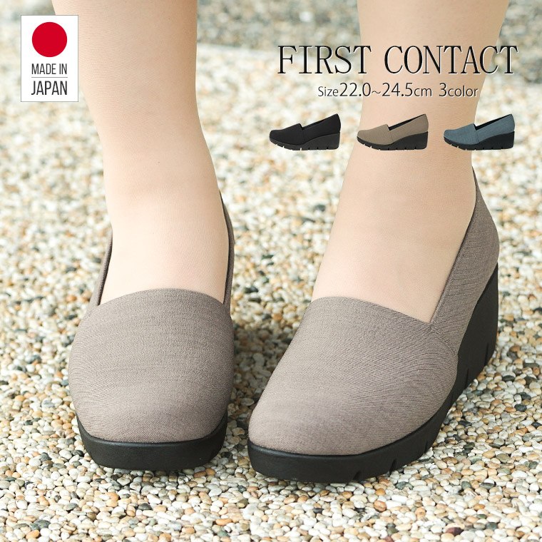 🌸 First Contact Wedge Sole Slip-on Pumps 39615 Made in Japan