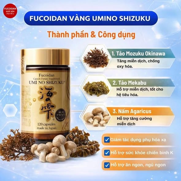 Sự kết hợp giữa Fucoidan chiết xuất từ tảo nâu Mozuku & Mekabu cùng với tinh chất nấm Agaricus tạo nên 𝗴𝗶𝗮̉𝗶 𝗽𝗵𝗮́𝗽 𝘁𝗼𝗮̀𝗻 𝗱𝗶𝗲̣̂𝗻: nhân đôi sức mạnh để bảo vệ һệ ᴍɪễп Ԁịᴄһ, vừa bảo vệ, vừa sửa chữa tế bào, nâng cao sức khỏe cho bệnh nhân, hỗ trợ đ𝑖𝑒̂̀𝑢 𝑡𝑟𝑖̣ 𝑢𝑛𝑔 𝑡ℎ𝑢̛ và phòng ngừa 𝑢𝑛𝑔 𝑡ℎ𝑢̛ tái phát/di căn
